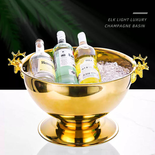 European Style Stainless Steel Deer Head Bucket Champagne Ice Bucket Large Capacity Red Wine Bucket Restaurant Ice Bucket for Bar