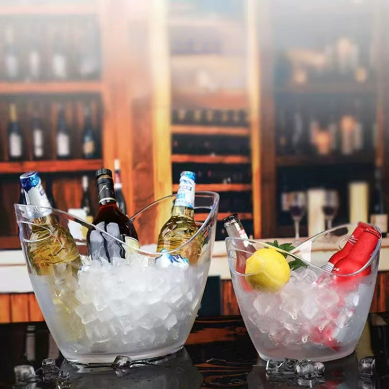 High-quality acrylic ingot ice bucket, fashionable and simple shape, can be used in bar and ktv. Colorful, a variety of options, fine workmanship, sturdy and durable. Humanized design, binaural lifting design, enjoy different ways of lifting.