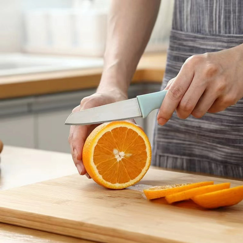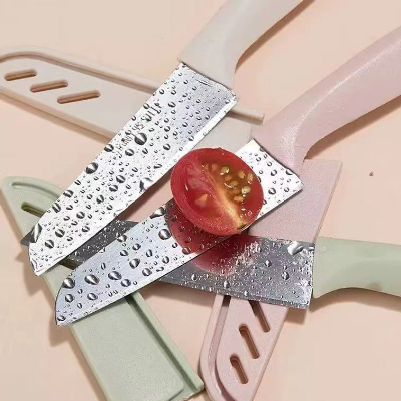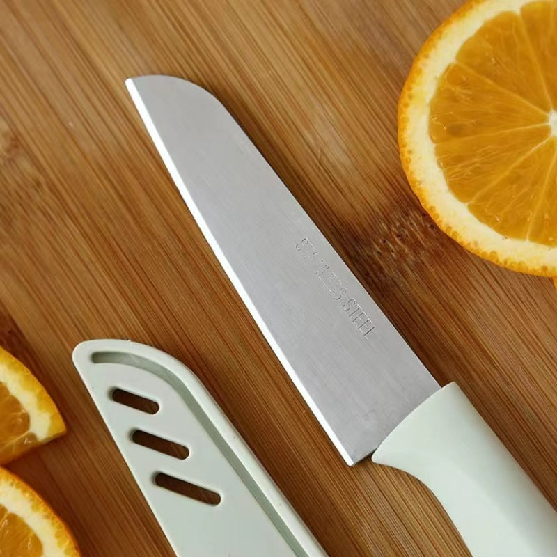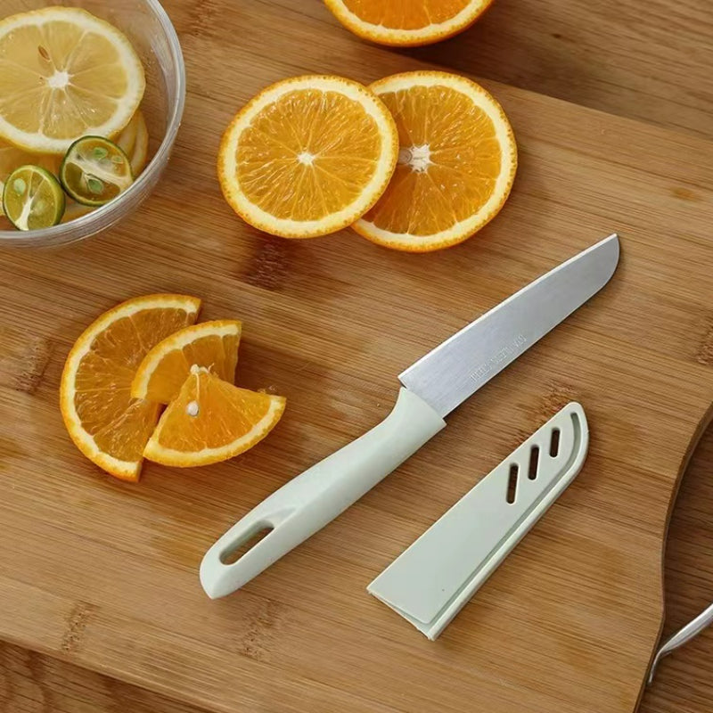 Stainless steel fruit knife, enjoy relaxed and happy hours. Thin and sharp, easy to cut, cut vegetables, cut meat, sharp without leaving marks. Safety knife cover, to prevent accidental injury, with good looks, sharper and more durable.