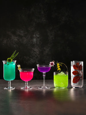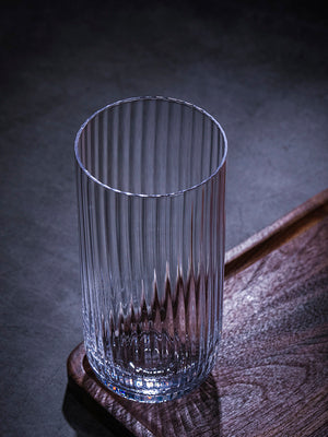 The simple and stylish Collins glasses for a cold mojito,bloody mary,gin and tonic or whatever your favorite cocktail.These highball glasses dawn a contemporary look that is perfect for entertaining and everyday use. With their sleek silhouette and stripe design, this tumbler glass set is versatile enough for casual and formal use.