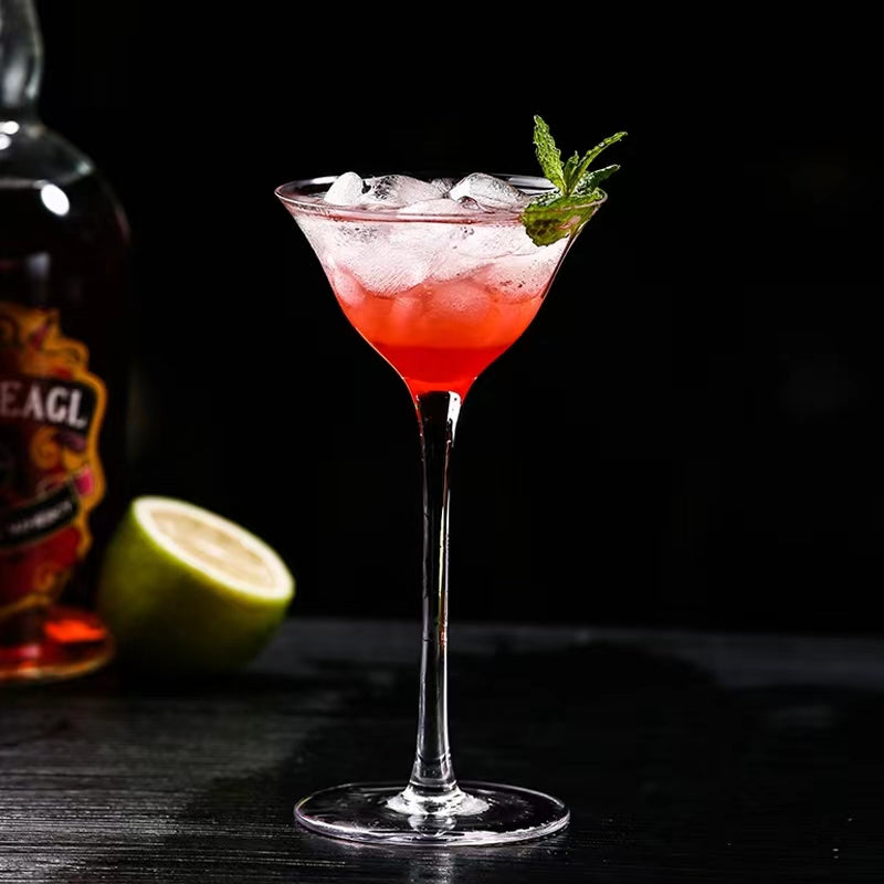 Nothing can elevate the refreshing taste of a cocktail more than serving it in luxurious glasses. This Martini Glasses will give your drink a refined note, making every sip a memorable experience. The wide rim is carefully cut and polished to direct the cocktail to the center of the tongue, creating a harmony of flavors.