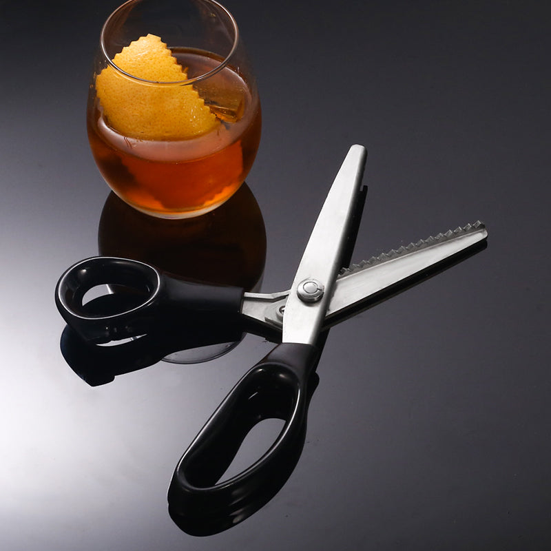 Decorative lace scissors, professional cocktail trimming lemon slice scissors. Sawtooth notch, paper-cut, photo-cut, cloth sample, light and flexible, durable and sharp.