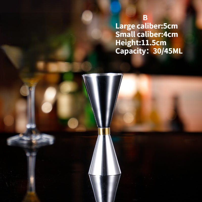 The double-headed wine measuring device has also become an ounce cup, a wine set used to accurately measure the amount of liquid. Generally, The two ends have different capacities, and the middle is small and easy to hold. The design of the specifications allows you to complete the bartending in one go, no matter what kind of wine list you choose. This one has a larger capacity, 60-90ml is an oversized version.