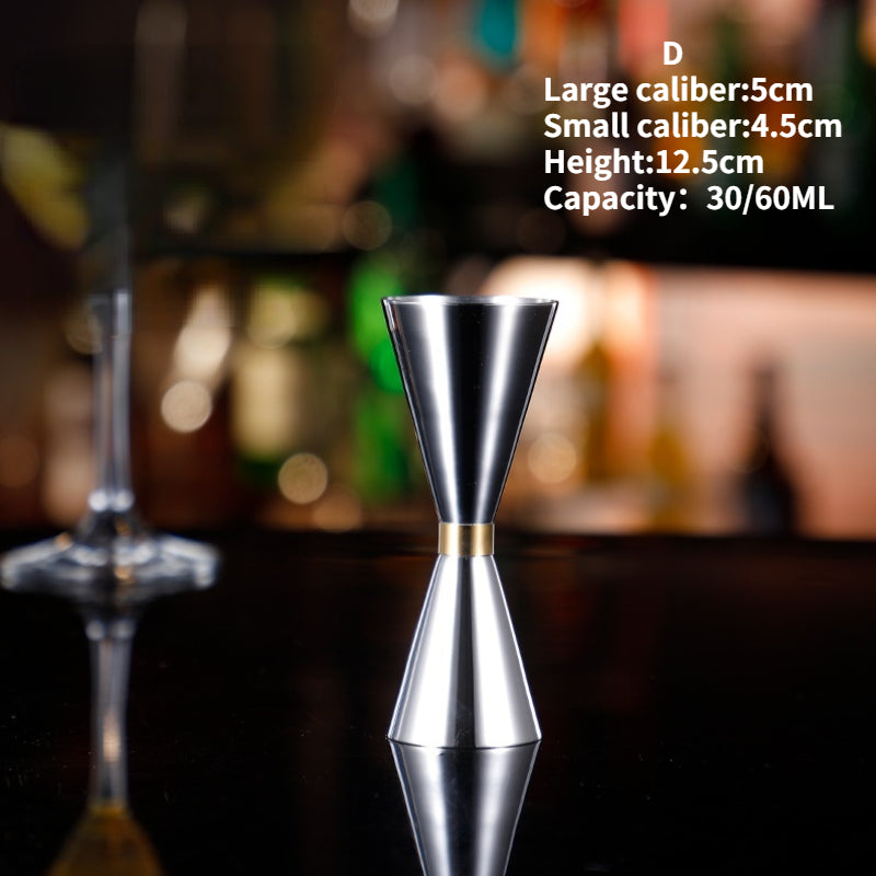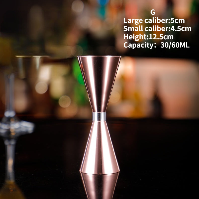 The double-headed wine measuring device has also become an ounce cup, a wine set used to accurately measure the amount of liquid. Generally, The two ends have different capacities, and the middle is small and easy to hold. The design of the specifications allows you to complete the bartending in one go, no matter what kind of wine list you choose. This one has a larger capacity, 60-90ml is an oversized version.