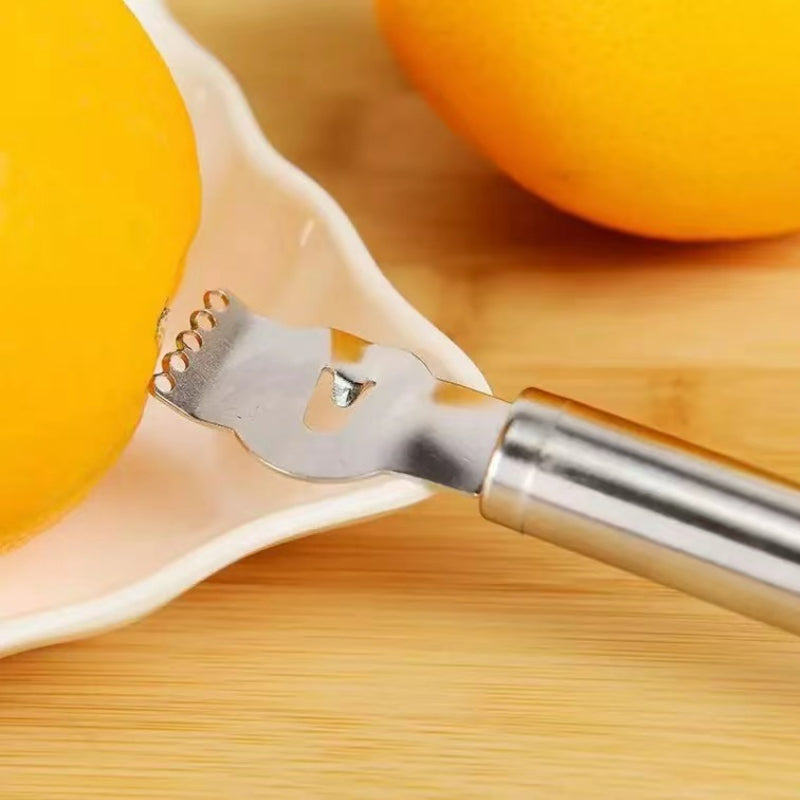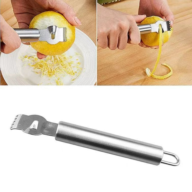 It is easy to use zesting tool that is ideal for lemons, limes, or oranges. It is made of high quality Stainless Steel and features black plastic ridges that keep your fingers from slipping. Add a little color to your cocktails with a thin twists of lemon or lime.