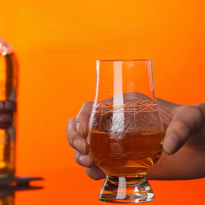 Whiskey smelling cup, beautifully carved, carved cup body, majestic, not only a wine set, but more of an artistic beauty. The cup body shows the wine color, high transparency, high transparency, and restores the true color of the wine. Cup mouth design, rounded and flat corners, bring a better taste design. The bottom of the cup is designed, the cup body is transparent, and the thickened base is placed stably.
