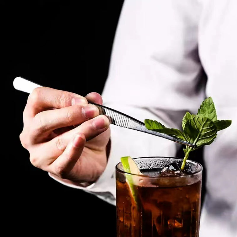 Garnish tongs are the perfect elegant tool for picking and garnishing cocktails. Made of quality grade stainless steel, the tongs feature teeth and curved edges that provide a secure grip on even the smallest food or garnish. Use them to pick olives, cherries, mint, coffee beans or anything you will add as a garnish to your cocktail.