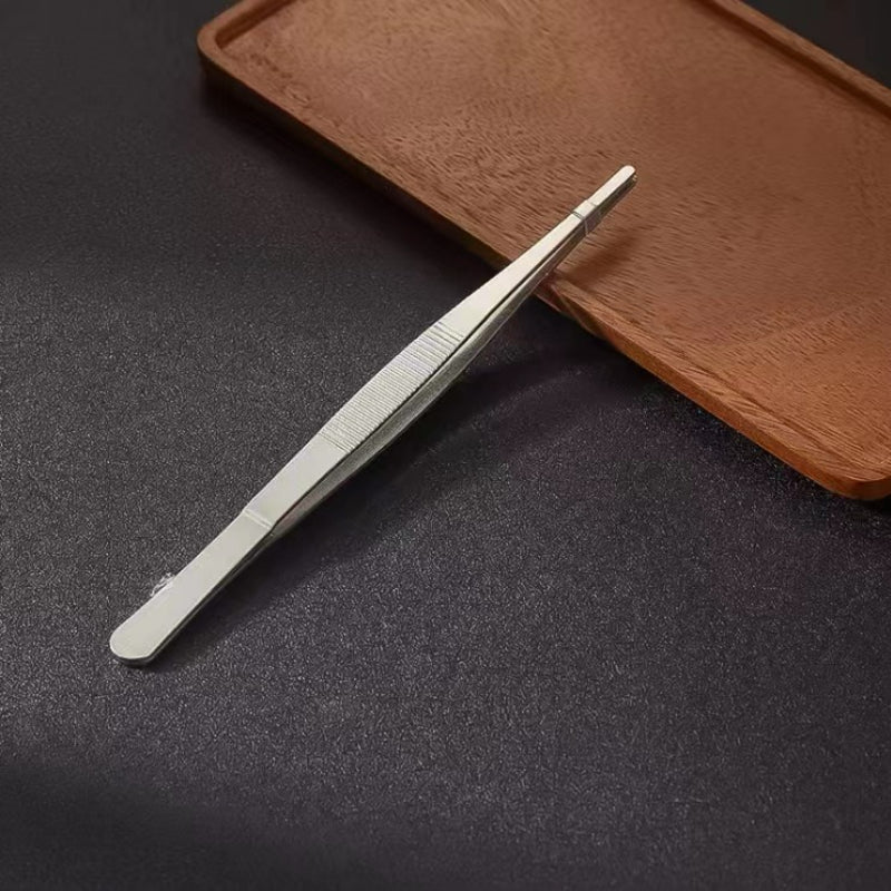 Stainless Steel Straight Garnish Tongs Round Tip Anti-slip Garnish Tongs Thickened and Stiffened Garnish Tongs