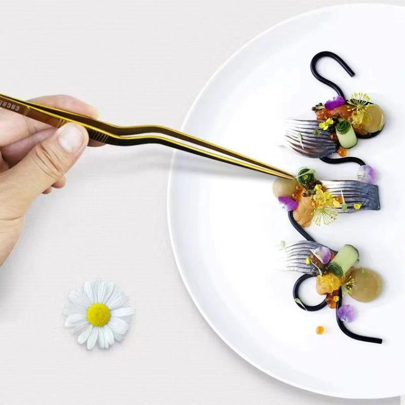 High Quality Details Tweezers Elbow Straight Head Food Tweezers Chef Tweezers