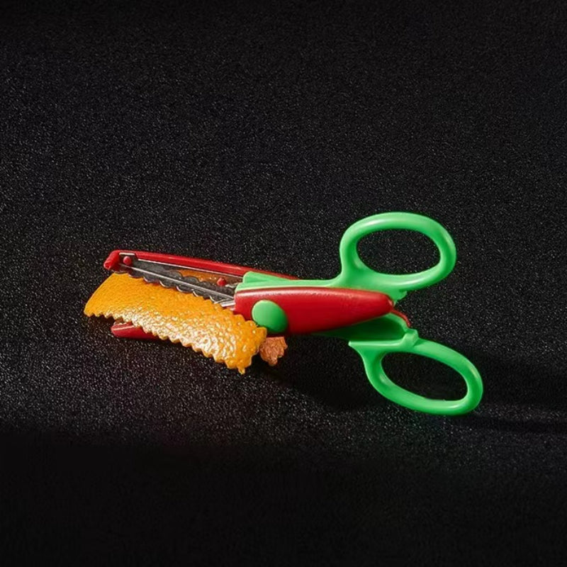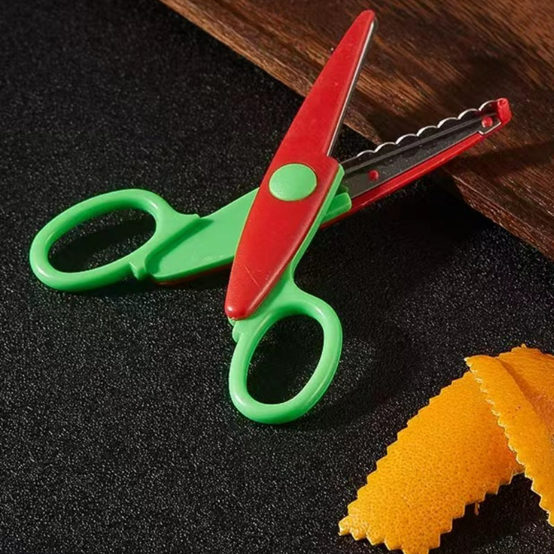 DIY lace scissors on hand, you can cut orange peel, lemon peel, etc., cut out the beautiful and personalized edge of the decoration to be made.