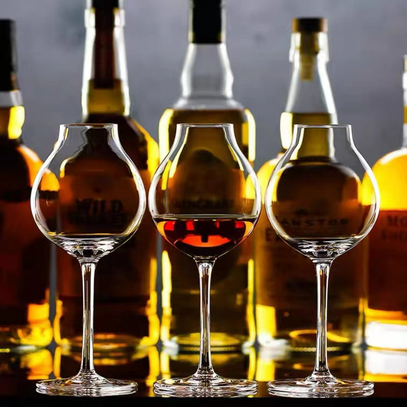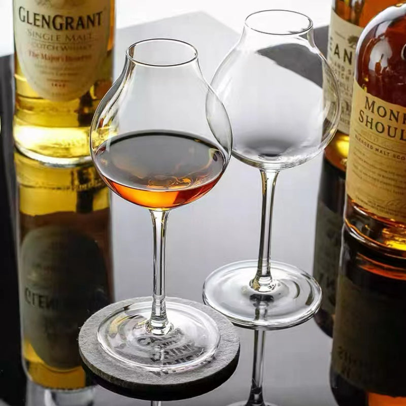 The tulip smelling cup is filled with fine wine and carries the taste. It is also suitable for ice wine, noble rot and other wines with high sweetness. You can see the color of the wine, and generally speaking, tasting a glass of whisky, the color will give some hints about the style of the wine. This scented cup is made of crystal material, with a clear and transparent appearance, you can directly appreciate the color of the wine.