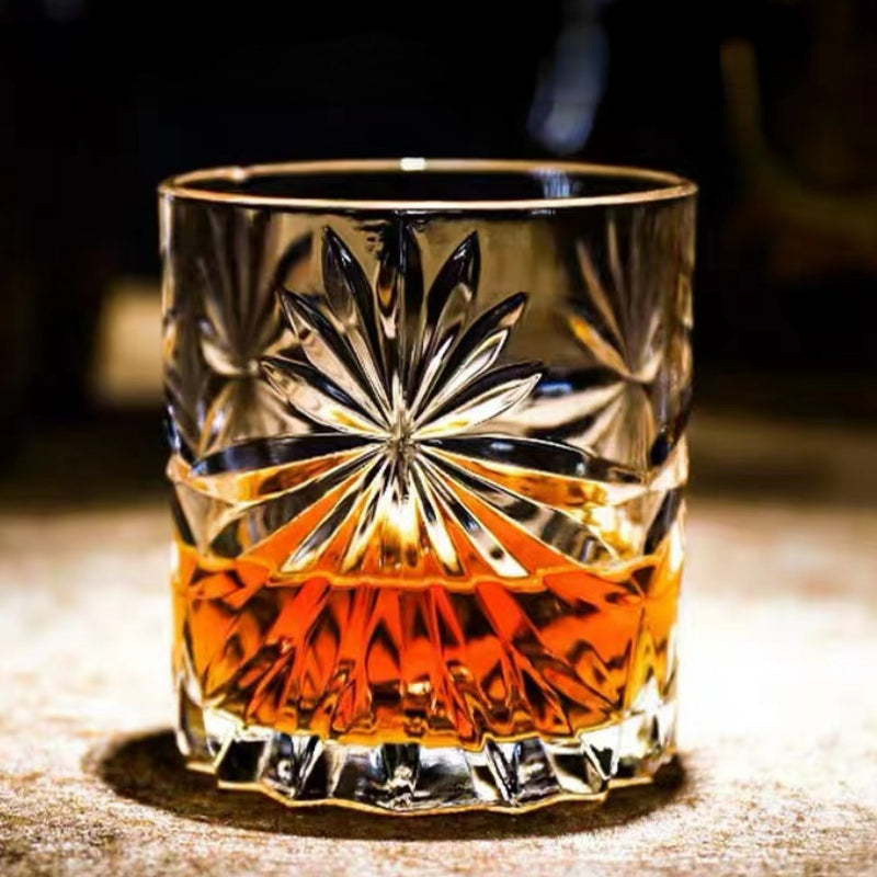 Delicate Lead-free Glass Crystal Bar Home Use Ice Flower Cup Glass Tumbler Whiskey Glass