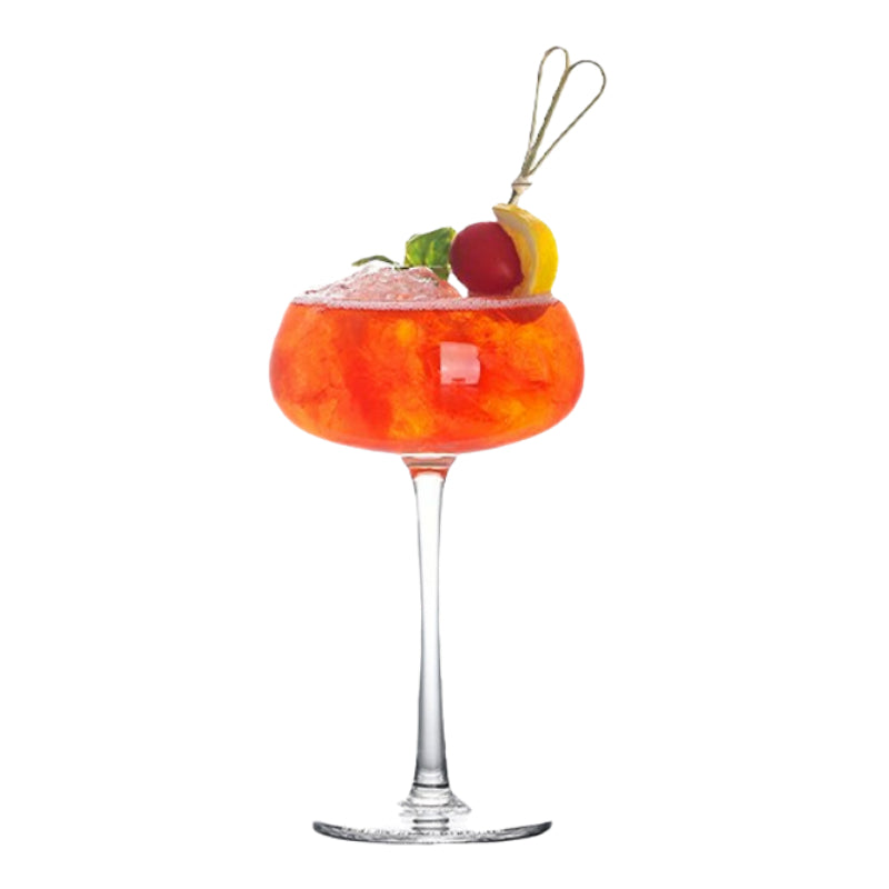 Magnificent crystalline glass displays the natural color of your cocktails. This coupe glass use premium crystal, making the coupe glass brilliant and light enough. The round coupe bowl sits atop an elongated stem that keeps your drink cool while sipping. Truly combining the sensual pleasure of a fine drink with the fine art form of these crystal martini glasses.This coupe glass is a bit larger than most. You can safely pour all the cocktails from the shaker into the glass.