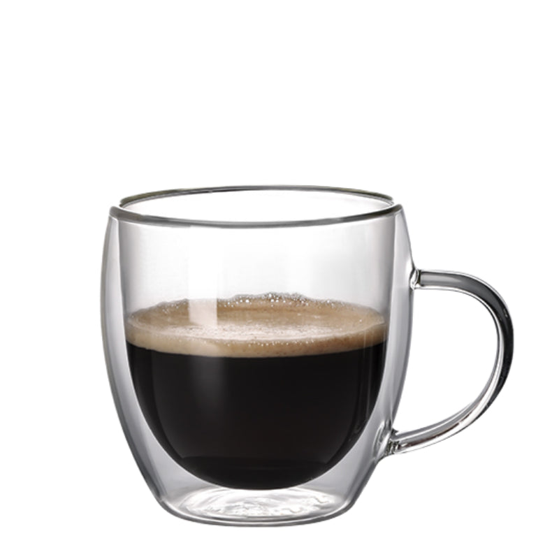 Double walled, hand blown glass insulation keeps your coffee hot and your hand cool. No sweat! Also works great for your favorite icy cold drink.Perfect for your favorite tea, coffee, chocolate or other hot beverage.Insulated Glass Coffee Mugs are explicitly designed with double-wall insulation to protect your hands from hot/cold beverages while enjoying your favorite drink.