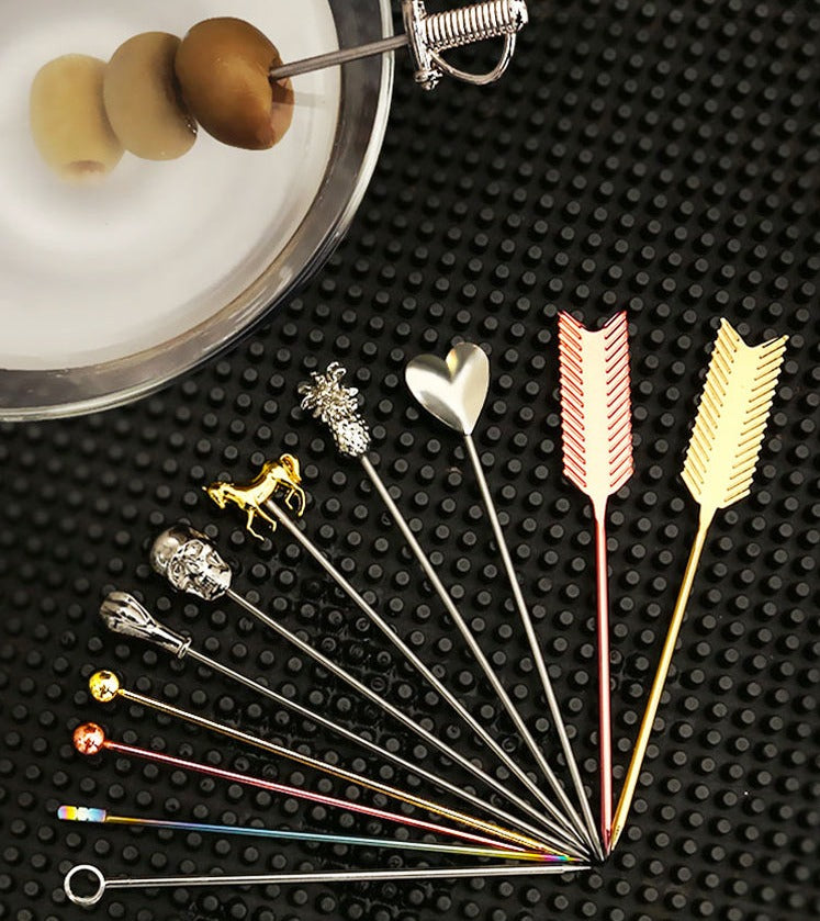Stainless Steel Cocktail Sign Wine Needle Creative Martini Olive Sign Bartender Decoration Items Fruit Fork