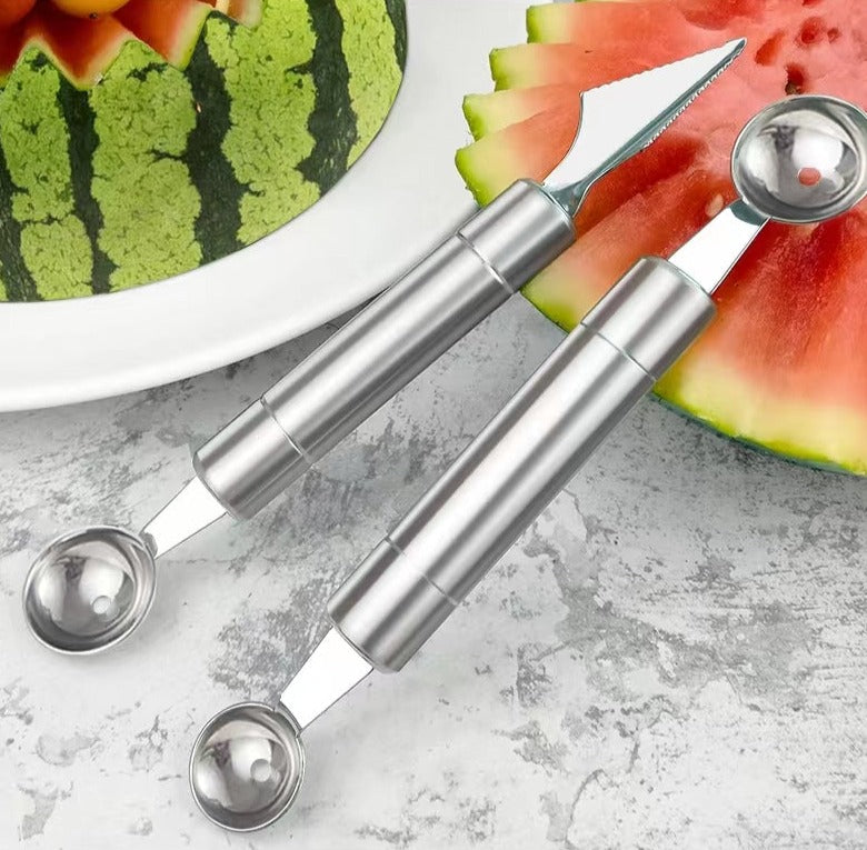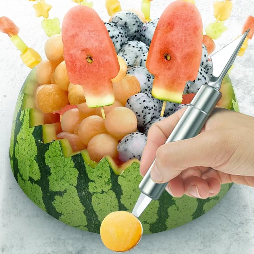 Double-Headed Stainless Steel Ball Digger Pattern Segmentation Carving Knife Watermelon Spoon Cutting Fruit Carving Artifact Digging Fruit Round Spoon