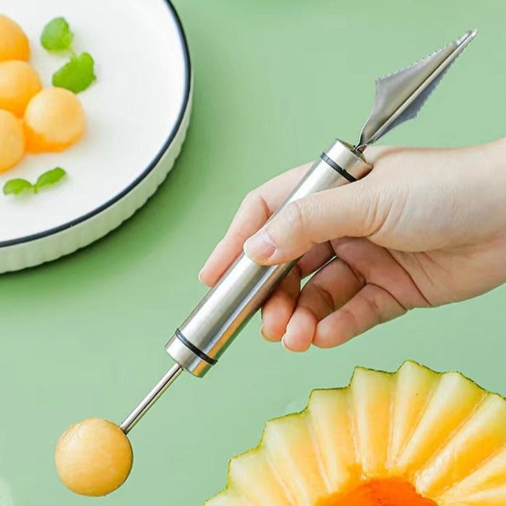 Double Head Stainless Steel Fruit Divider Watermelon Scoop Ice Cream Scoop Stick Carving Tool