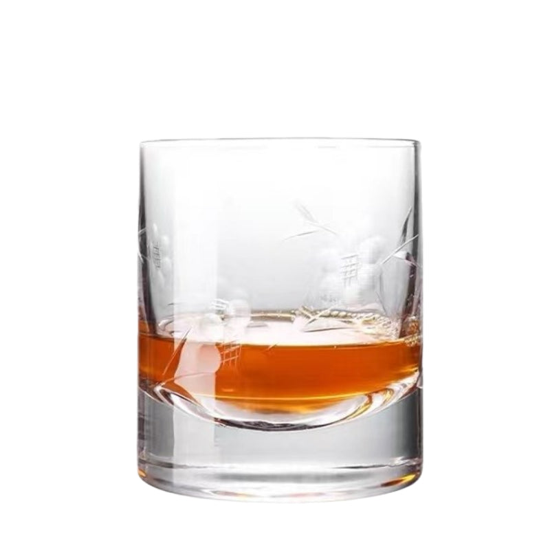 - Replica engraved whisky glass, healthy material, round mouth, embossed texture.