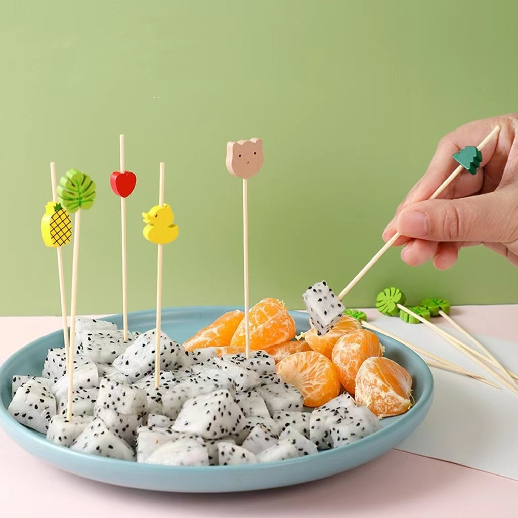 This bamboo stick is processed at high temperature, carefully polished, has no burrs, no forks, and has good toughness. The creative design of the tail is easy to take by hand. It can be used for inserting fruits, cakes, dishes, etc.