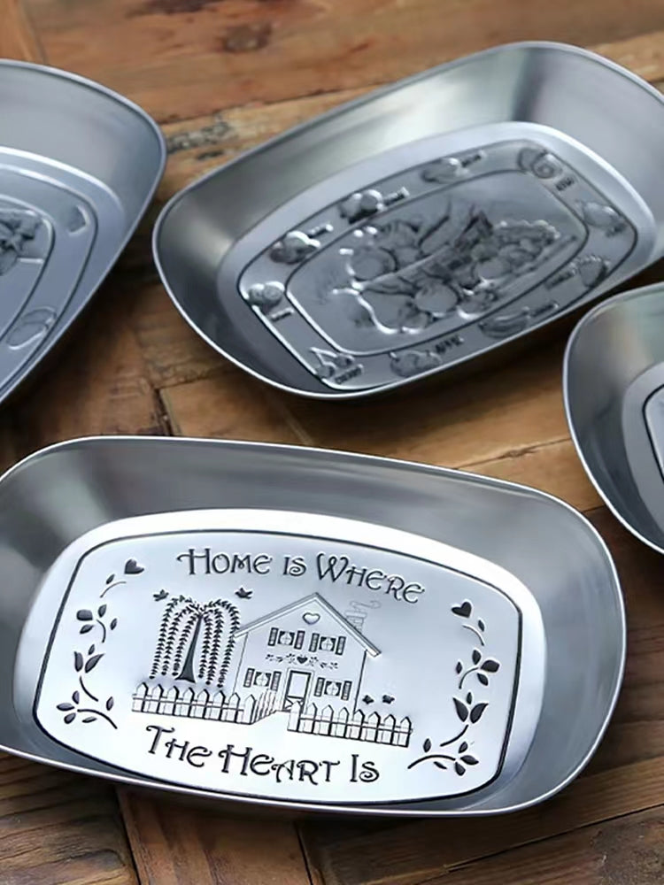 This tray is made of food-grade material, which can come into contact with food, is resistant to high temperature and corrosion, and can be used with confidence for a long time. Mechanical stamping pattern, exquisite paint process, delicate texture, more ceremonial sense of dining.