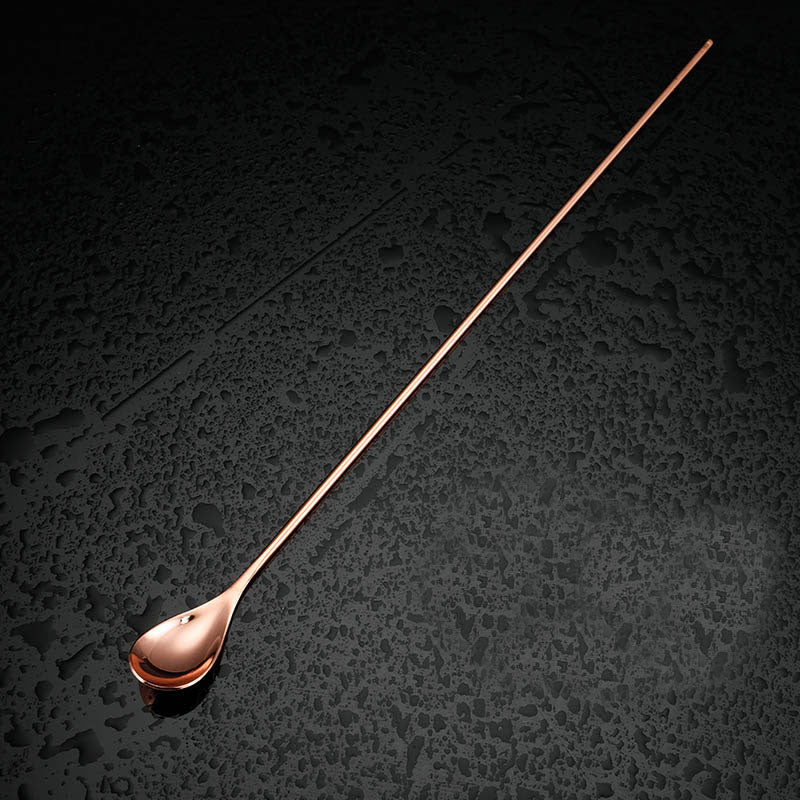 This stainless steel stirring spoon is an ideal way to stir your cocktails and evenly distribute sugar, fruit, and other additions to your drink. The long handle keeps your fingers dry as you stir and the curved part of the spoon is the essential section of the spoon used for mixing. Ideal for stirring cocktails and mixed drinks.