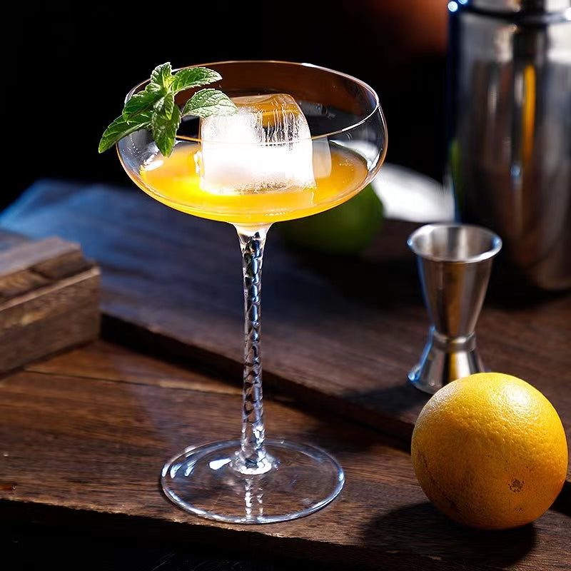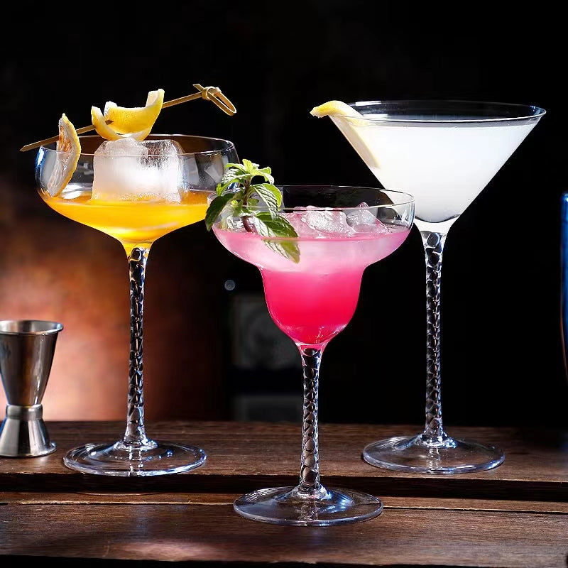 Hand Blown Spiral Margarita Glasses,Crystal Cocktail Glasses for Bar, Martini,Manhattan