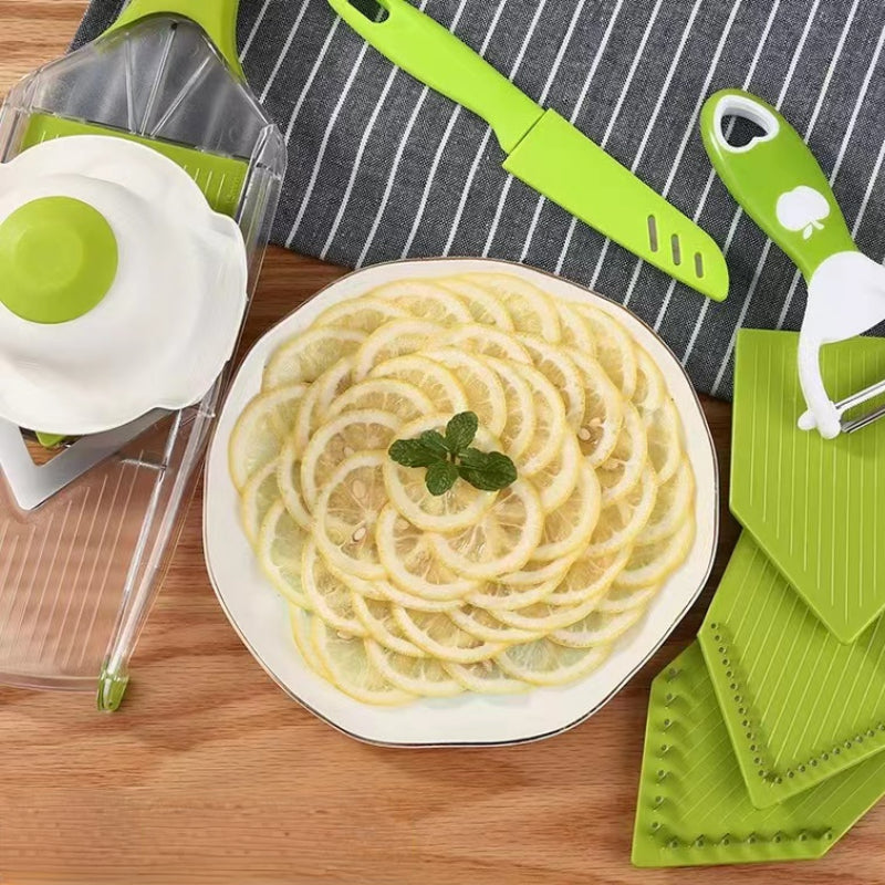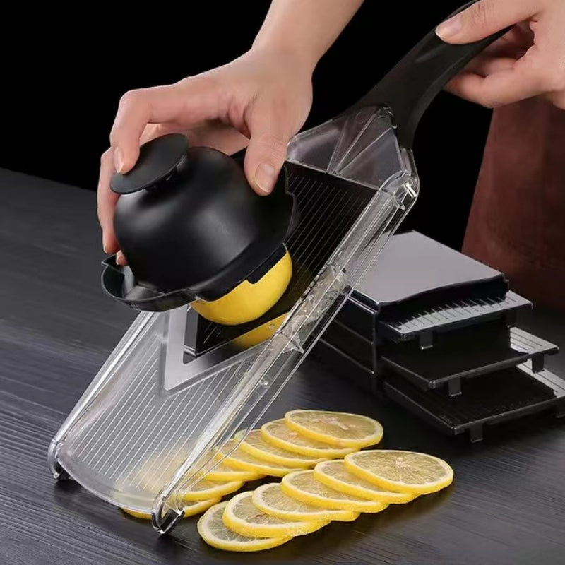 Professional lemon slicer, cut all kinds of fruits at will, the blade is sharp, please use it carefully. In addition to slicing, we can also shredded, with two interchangeable shredding inserts of different thicknesses.