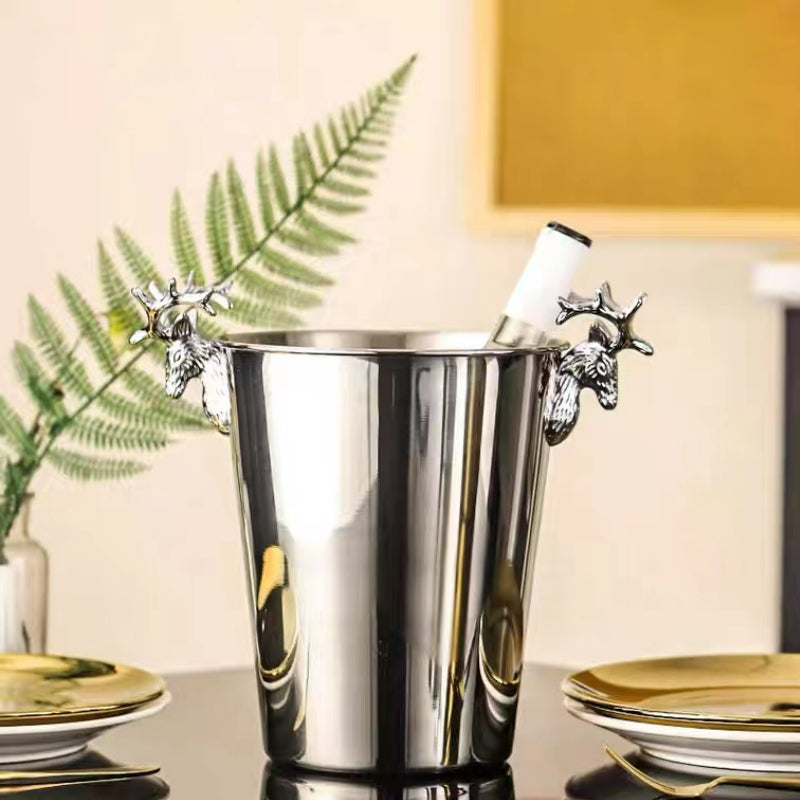 Light and Creative Stainless Steel Deer Head Ice Bucket Red Wine Champagne Barrel Bar KTV Ice Bucket Beer Champagne Bucket