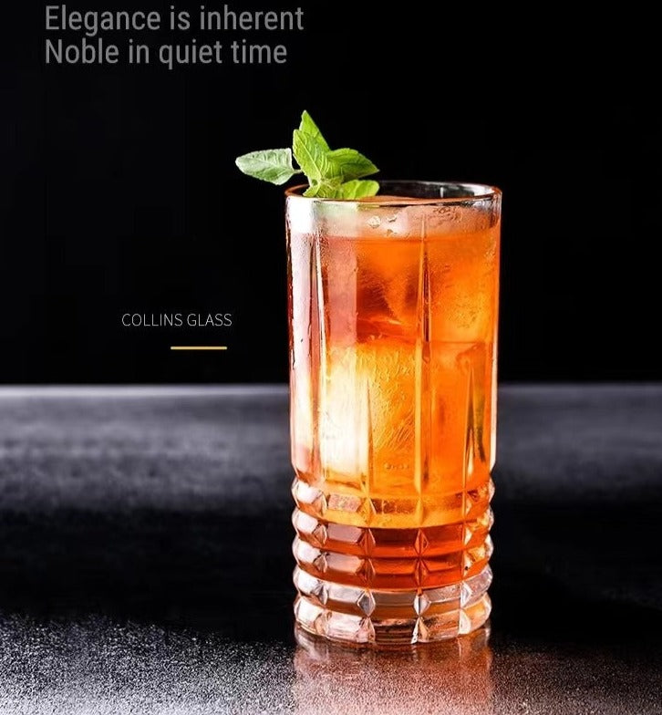 350ML-Retro Embossed Cocktail Glass Glass Long Drink Glass Collin Glass Juice Glass Checkered Sword Pattern Glass