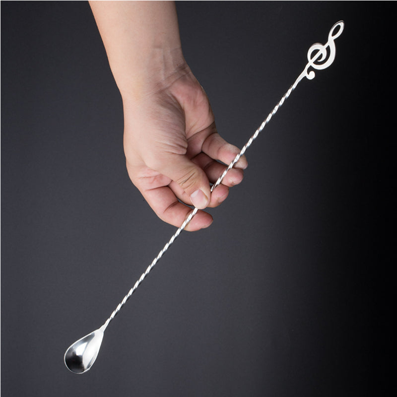Note Shaped Bar spoon,40.0cm Long Spiral Handle Cocktail Mixing Spoon
