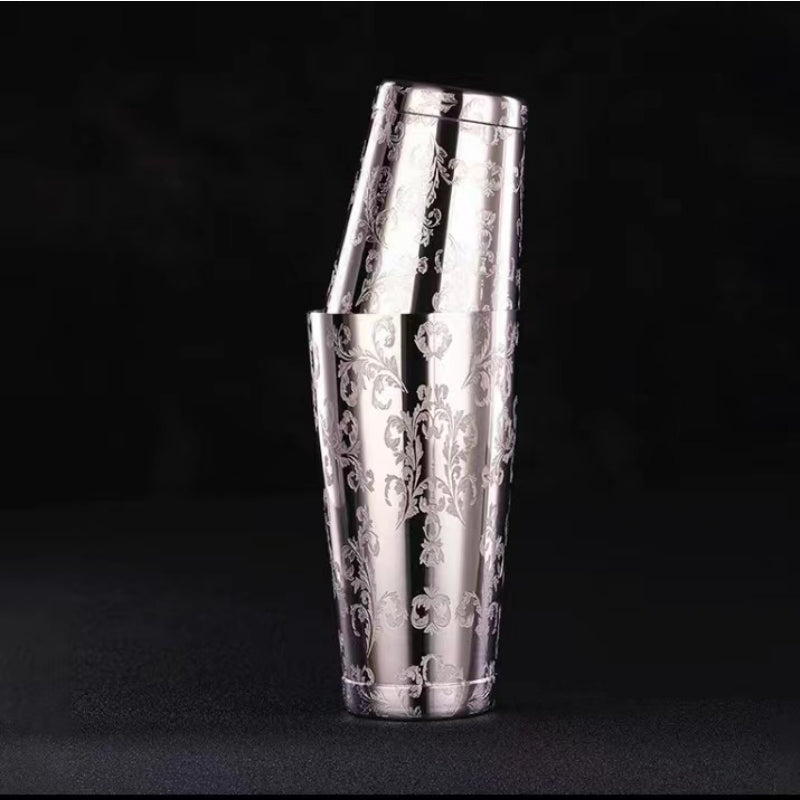 Professional Bartender Customized Engraved Boston Shaker Stainless Steel Patterned Tin for Bar Party