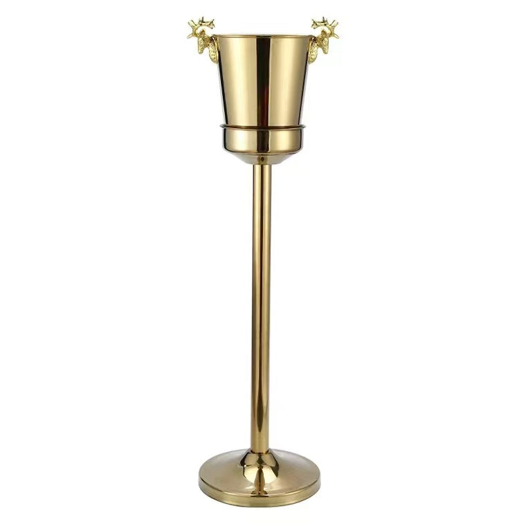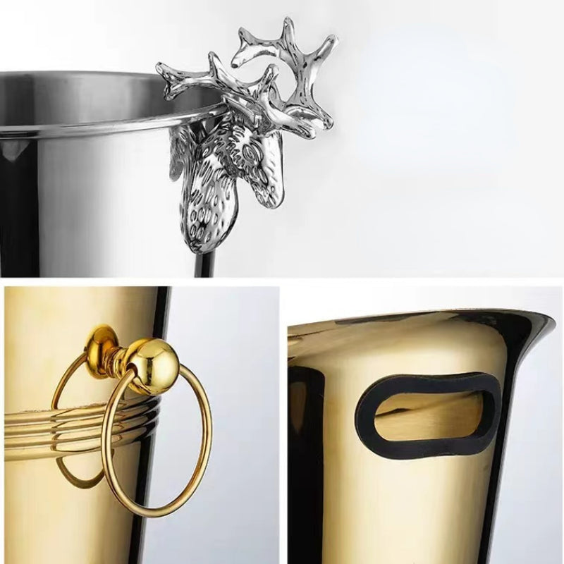 Drink Ice Bucket Stainless Steel Deer Head Ice Bucket Beer Wine Beverage Champagne Gold Ice Bucket with Stand