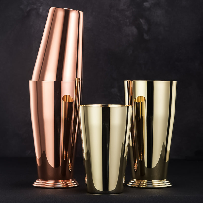 This beautiful Boston Shaker set blends vintage flair with modern mixology. This 2 piece Boston Shaker has been designed for the professional level bartender. The double banding design guides hand placement for optimum shaking.