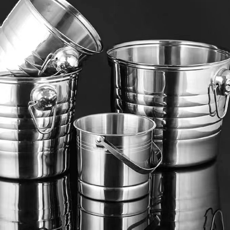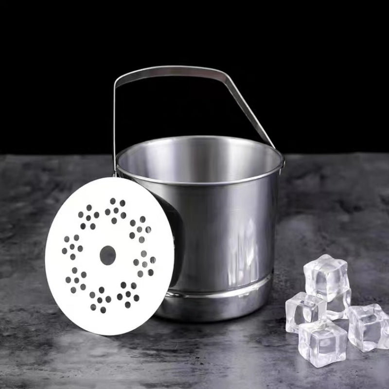 The stainless steel ice bucket is made of thickened stainless steel. The barrel body is mirror-polished. The product is practically made of thickened stainless steel. The thickened design is healthy and environmentally friendly. It is easy to clean and durable. Fashion.