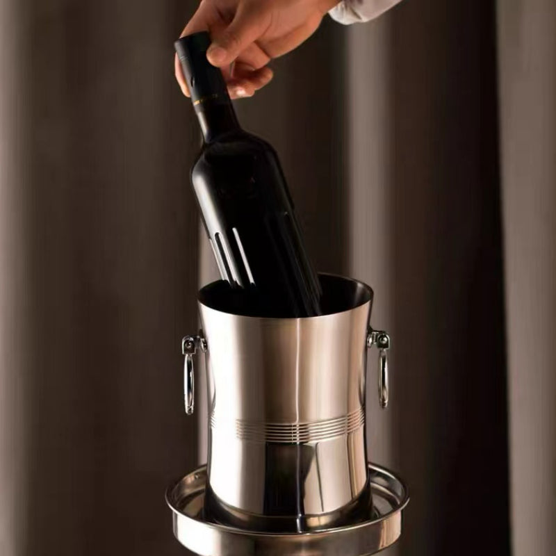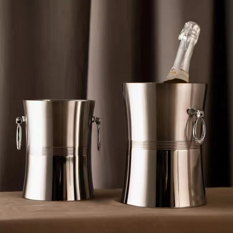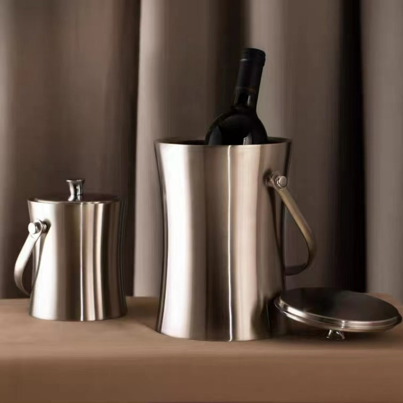 Custom Large Insulated Ice Bucket Stainless Steel Champagne Wine Beer Ice Bucket with Lid Tongs