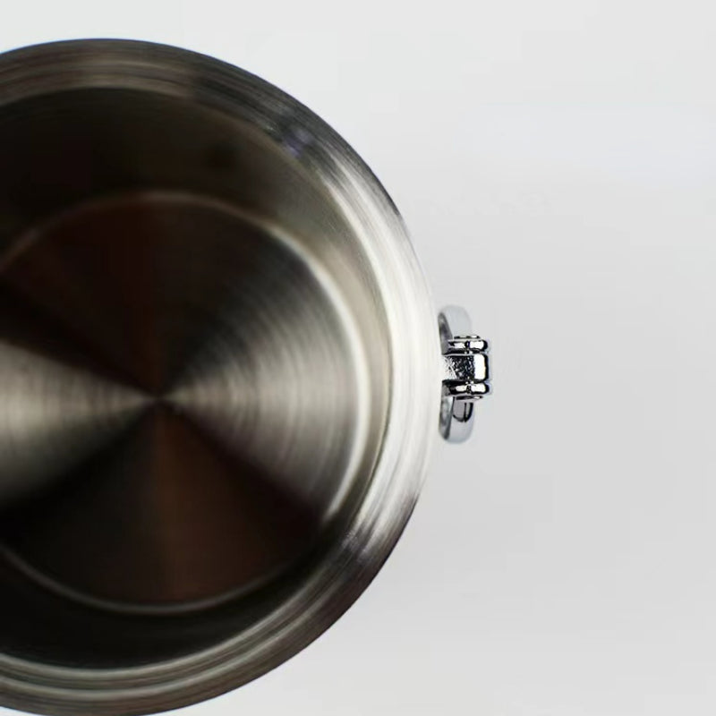 Stainless steel ring handle, rich in design, easy to carry and easy to disassemble.Double barrel body, more effective heat preservation.Concave and convex bottom, effectively prevent slipping, stable placement.The inner layer is made of 304 material and has a hollow structure for better cooling effect.