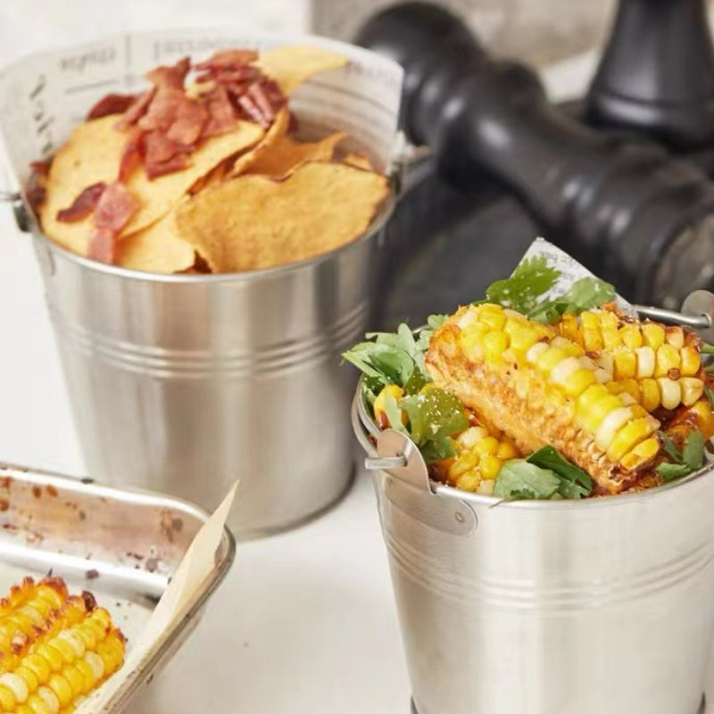 Galvanized buckets are perfect to use as a floral containers for weddings, centerpiece accents or window herb gardens. Great for storage and organization. Galvanized pails can be used to create flower arrangements for a dramatic centerpieces. Use this for crafts, decorations, gift baskets, floral arrangements and more. Great to add potpourris, rose-hips & more to or use as a candle holder. It's perfect for themed restaurants, bars, cafes, or delis with its distinct country flair. If using this for food service use only wrapped food or line with parchment.