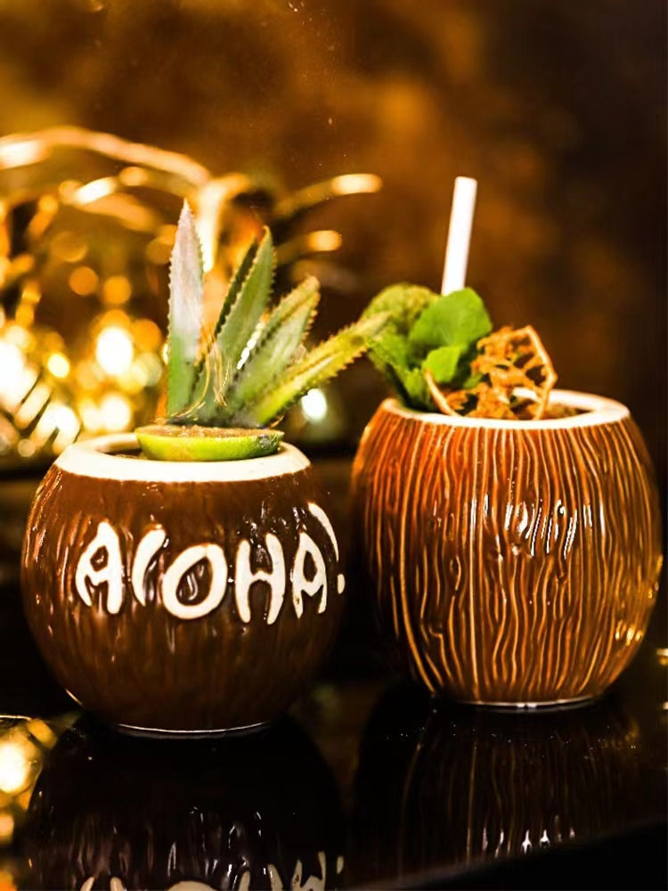 Hawaiian Coconut Tiki Cup Personalized Coconut Shaped Cocktail Cup Bar Counter Ceramic Cup Decoration